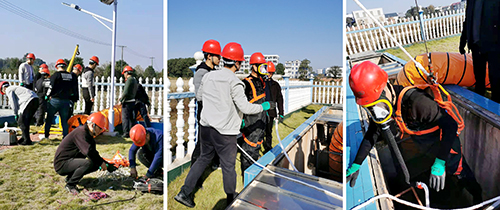 演練過程中,操作人員拉起安全警戒線、進行強制通風、開展氣體檢測、填寫下井作業票并報批,隨后依次開展了人員下井、井內清淤、淤泥提升、淤泥堆放及外運、人員升井、模擬人員受傷現場急救處置、拆除警戒線、清理現場、現場點評等一系列環節。整個過程,全員服從指揮、配合密切,對模擬事故反映迅速、判斷準確,切實加深了對有限空間作業危害性的認識,提高了應急處置能力和反應速度,達到了預期效果。
