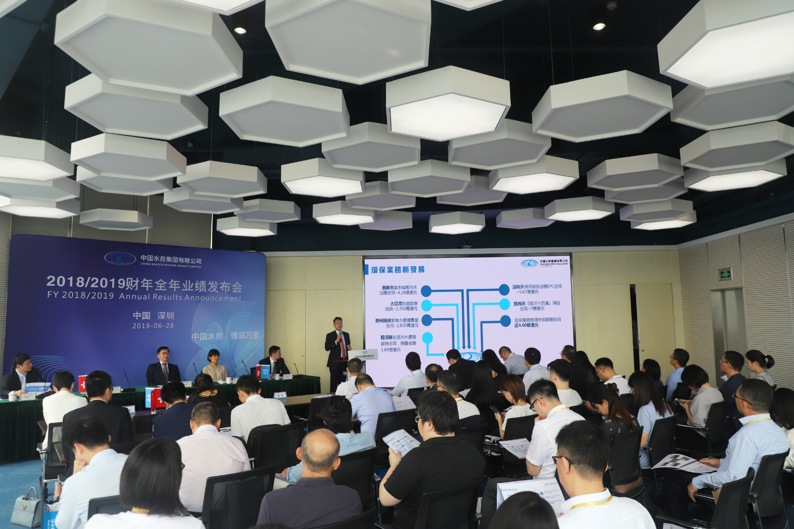 6月28日上午,中國水務2018/19財年全年業(yè)績發(fā)布會在深圳榮超經(jīng)貿(mào)中心召開。